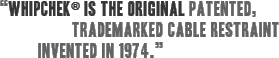 We invented, patented, and trademarked this product in the early 70's and it has seen widespread use since. Meeting MSHA and OSHA requirements for hose restraint, Whipcheks® are used in mining, as well as many industrial air hose applications. These strong steel cables prevent hose whip in case of accidental separation of coupling or clamp device.  The Whipchek® reaches across the hose fittings to provide standby safety for hose.  Spring-loaded loops in the cable ends open easily to slip over the couplings for a firm grip on the hose.  This product has been thoroughly tested with more than 30 years of proven service.